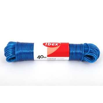 De Ibex waslijndraad 40 m is een sterke draad. De waslijndraad heeft een stalen kern en een blauw geplastificeerde buitenkant, hierdoor is de draad erg stevig. De draad is 40 meter lang en heeft een diameter van 2,8 millimeter.