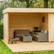 Je kunt bij de overkapping van je tuinhuis ook dichte inbouwwanden plaatsen. Deze wordt standaard geleverd met geïmpregneerde funderingsbalk.
