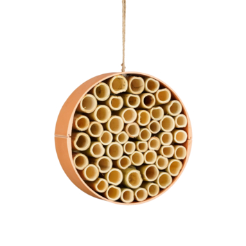 Insecten zijn nuttige dieren die zorgen voor bestuiving als voedsel voor andere dieren en bescherming tegen plagen. Natuurlijk zijn ze welkom in je tuin en hebben ze een speciale plek in dit insectenhotel. Zo help je een handje om het ecosysteem in stand te houden. Het heeft een frisse oranje kleur en zorgt voor een leuke uitstraling. Het insectenhotel is vervaardigd van plantaardige vezel en heeft als afmeting H6 x ø21 cm.