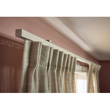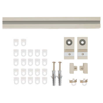 De Intensions gordijnrail Deluxe is een strak vormgegeven gordijnrail welke als complete set geleverd wordt. Bij de rail zitten 2 montagesteunen om de rail aan het plafond te bevestigen, 22 runners om de gordijnen aan op te hangen, 2 eindstoppers en 2 eindkappen. De runners glijden soepel door de rail, waardoor het openen en sluiten van de gordijnen een makkie is. Deze rail is 200 cm lang en uitgevoerd in de kleur warmgrijs. De rail is heel eenvoudig op maat te maken met behulp van een ijzerzaag. Luxe wandsteunen en accessoires zijn los aan te schaffen.