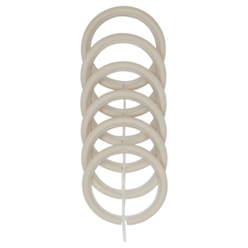 De gordijnringen in de kleur warm grey zijn geschikt voor 28 mm metalen of houten gordijnroedes. De ringen zijn van metaal en zijn voorzien van een transparant kunststof inlay waardoor deze soepel over de roede heen schuiven. Ook hebben de ringen een kunststof oog waar de gordijnhaken in bevestigd kunnen worden. De ringen worden geleverd per 6 stuks. Gemiddeld gebruik je 10 ringen per meter breedte.