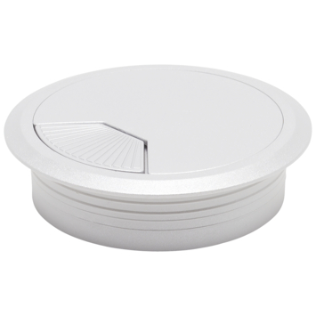 Deze kabeldoorvoer van inspirations heeft een doorsnede van 8cm. De kabeldoorvoer is zilverkleurig. Ideaal als je een computerop een bureau wilt plaatsen, maar de stroomvoorziening onder het bureau is geplaatst. De kabels kunnen dan door het gat van de kabeldoorvoer naar de stroomvoorziening gebracht worden