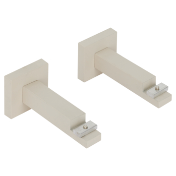 Met deze luxe wandsteun monteer je de gordijnrail deluxe gemakkelijk tegen de muur. In de set zitten 2 stuks wandsteunen in de kleur warmgrijs. De wandsteunen monteer je 10 cm vanaf beide zijkanten. Voor een breedte tot 200 cm gebruik je 2 steunen en voor een breedte boven de 200 cm gebruik je 3 steunen. De steunen worden geleverd inclusief schroeven en pluggen. Standaard wordt de complete rail Deluxe set geleverd met plafondsteunen. Kan de Deluxe rail niet aan het plafond gemonteerd worden of wil je een nóg luxere uitstraling dan zijn deze wandsteunen de oplossing!