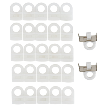 Deze Intensions runners zijn geschikt voor de gordijnrail Deluxe. Standaard wordt de gordijnrail Deluxe geleverd als complete set inclusief runners maar wanneer er meer runners nodig zijn kan dit gemakkelijk aangevuld worden met deze set. De runners zijn geschikt voor gordijnen met een enkele, dubbele of driedubbele plooi. Ze kunnen niet worden gebruikt voor een wavegordijn. De set bestaat uit 25 stuks en er worden ook 2 eindstoppers meegeleverd. De runners zijn wit. Gemiddeld gebruik je 10 runners per meter breedte.