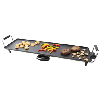 De teppanyaki grill heeft een vermogen van 1800 watt, cool touch handvatten en biedt een gezondere manier van grillen doordat overtollig vet wordt afgevoerd.