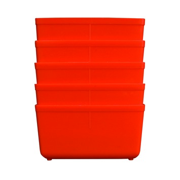 Deze inzetbakjes kunnen worden gebruikt in combinatie met een assortimentsdoos. Je kunt meerdere bakjes met elkaar combineren om zo een gepersonaliseerde assortimentsdoos te maken. Deze set bestaat uit 5 inzetbakjes van ca. 8x8x4 cm in de kleur oranje.