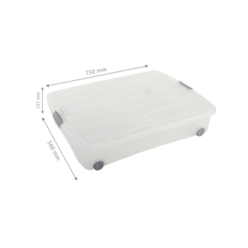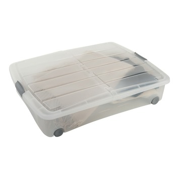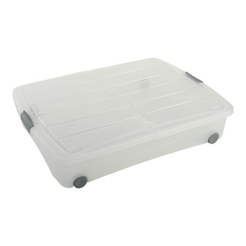 De IRIS Carry Stocker Under Bed box is perfect om spullen te bewaren onder je bed of andere meubels. Door een hoogte van nog geen 16 centimeter past deze opbergbox met een inhoud van 50 liter onder veel meubels. Met behulp van de wieltjes is de IRIS Carry Stocker Under Bed box ook praktisch in gebruik. Mede door de stevige handgrepen en een deksel dat je helemaal kan openen ... of voor de helft (namelijk tot 90°).