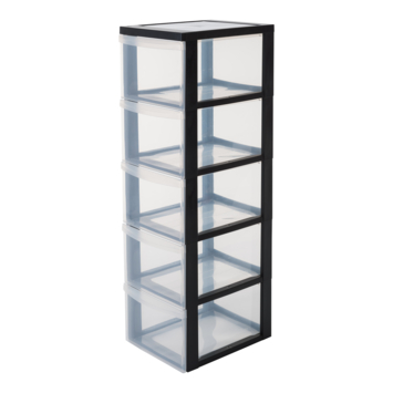 IRIS Design Chest ladesysteem - 5 diepe lades - Kunststof - Zwart/Transparant - Met wieltjes