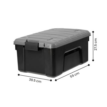 Houd je spullen overzichtelijk en beschermd met de Iris New Sia box 40L. Deze robuuste opbergbox is gemaakt van grotendeels gerecycled kunststof, waardoor hij sterk en milieubewust is. De stevige sluitclips zorgen ervoor dat de deksel goed vastzit en je spullen veilig en schoon blijven. Met een inhoud van 40 liter is de box ideaal voor het organiseren van kleding, gereedschap, seizoensspullen of accessoires in huis, garage of schuur. Dankzij het compacte en stevige ontwerp stapel je meerdere boxen gemakkelijk en houd je elke ruimte netjes. Praktisch, sterk en overzichtelijk: de ideale oplossing voor georganiseerde opbergruimte.