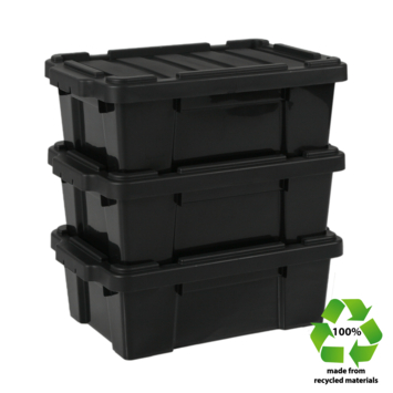 De robuuste Powerbox opbergbox van IRIS Ohyama is vervaardigd uit extra sterk kunststof en bestaat volledig uit 100% gerecycled materiaal. Deze set bevat 3 opbergboxen met elk een inhoud van 12,5 liter, ideaal voor doe-het-zelvers en iedereen die behoefte heeft aan een sterke opbergoplossing. De boxen zijn uitgerust met een deksel met kliksluiting voor een veilige afsluiting en zijn zowel nestbaar als eenvoudig stapelbaar dankzij de stevige deksel. De Powerbox is geschikt voor gebruik binnen en buiten, bijvoorbeeld in de garage voor het opslaan van gereedschap. De uitsparingen in de deksel maken het mogelijk om meerdere boxen met een spanband bij elkaar te houden voor extra stabiliteit.