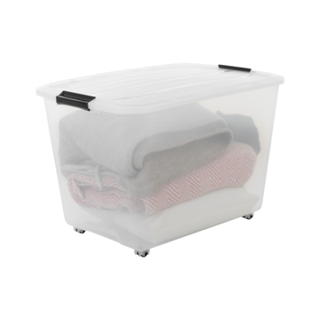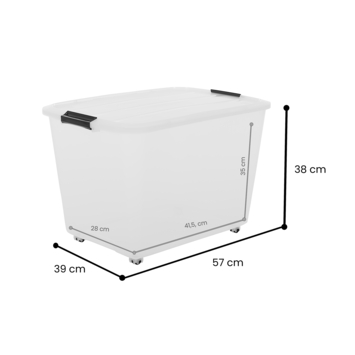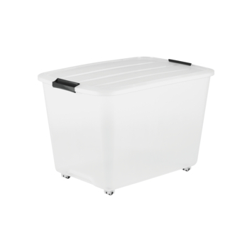 Houd al je spullen overzichtelijk met de Iris Rollerbox 60 L. Deze ruime opbergbox is gemaakt van stevig kunststof en heeft een transparant design, zodat je in één oogopslag ziet wat erin zit. De stevige sluitclips houden de inhoud veilig, terwijl de wieltjes het verplaatsen moeiteloos maken. Perfect voor kleding, speelgoed, seizoensspullen of andere huisitems. Dankzij het praktische ontwerp rol je de box eenvoudig van de ene naar de andere plek, zelfs wanneer hij vol zit. Ruim, gebruiksvriendelijk en stijlvol: deze rollerbox is ideaal voor iedereen die orde wil houden.