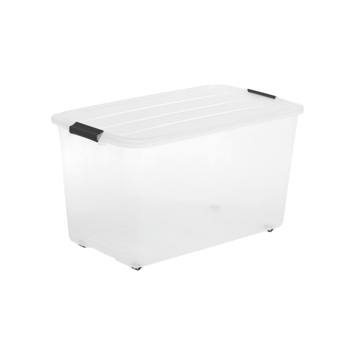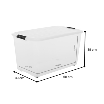 Houd al je spullen netjes en overzichtelijk met de Iris Rollerbox 70 L. Deze extra ruime opbergbox van stevig kunststof heeft een transparant design, zodat je direct ziet wat erin zit. De stevige sluitclips zorgen dat alles veilig blijft, terwijl de wieltjes het verplaatsen van de box moeiteloos maken, zelfs wanneer hij vol zit. Perfect voor kleding, speelgoed, gereedschap of seizoensspullen. Dankzij het praktische ontwerp rol je de box eenvoudig van de ene naar de andere plek, waardoor opruimen snel en makkelijk gaat. Groot, gebruiksvriendelijk en overzichtelijk: een ideale oplossing voor iedere ruimte in huis.