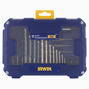IRWIN set IW6062523 is een 36-delige boren-/bitset 4 steenboren (5 6 7 en 8mm) 8 metaalboren (15 2 25 3 35 4 5 en 6mm) 5 houtboren (3 4 5 6 en 8mm) en een mix van de meest gangbare bits + magnetische bithouder Overzichtelijk verpakt in een stevige kunststof box