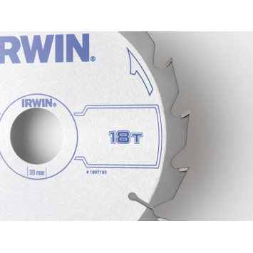Irwin cirkelzaagblad nr. 1897193 is een zaagblad met een diameter van 165mm en een asgat van 30mm. Er worden 2 reductieringen meegeleverd, waarmee je het asgat kan aanpassen naar 20 en 16mm. Door de grove vertanding (18T) zaag je snel door houten platen, maar is de afwerking wat ruw. Het blad heeft een dunne zaagsnede met wisselende EVO tanden om nog sneller te kunnen zagen. De hardmetalen carbide punten van industriële kwaliteit blijven langer scherp en gaan langer mee.