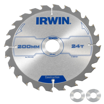 IRWIN cirkelzaagblad nr. 1897201 is een zaagblad met een diameter van 200mm en een asgat van 30mm. Er worden 2 reductieringen meegeleverd, waarmee je het asgat kan aanpassen naar 20 en 16mm. Grove vertanding (24T). Het blad heeft een dunne zaagsnede met wisselende EVO tanden om nog sneller te kunnen zagen. De hardmetalen carbide punten van industriële kwaliteit blijven langer scherp en gaan langer mee.