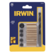 IRWIN deuvelset IW9093103 bestaat uit 20 houten deuvels met diameter 8mm, een houtboor diameter 8mm, 4 centreerpunten en een dieptestop.