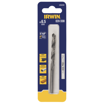 Irwin HSS PRO boor 10502390 is een metaalboor met de volgende afmetingen: Ø 6.5mm / werklengte 63mm / totale lengte 101mm. Inhoud: 1 stuks. HSS PRO metaalboren van Irwin zijn van industriële kwaliteit en bij iedere klusser geliefd om hun veelzijdigheid. Naast gietijzer, staal en andere ijzerlegeringen ook zeer geschikt voor het boren in allerlei non-ferromaterialen, kunststof, pvc en hout. De boorkop is geslepen in 118° wat zorgt voor uitstekende zelfcentrerende eigenschappen. Hierdoor zal de boor minder snel wegglijden. HSS PRO boren van Irwin hebben een hoge elasticiteit waardoor ze minder snel breken, ook bij kleine diameters. Voldoen aan kwaliteitsnorm DIN 338. Geschikt voor alle gangbare gesnoerde boormachines en accuboormachines.