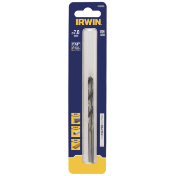Irwin HSS PRO boor 10502391 is een metaalboor met de volgende afmetingen: Ø 7.0mm / werklengte 68mm / totale lengte 109mm. Inhoud: 1 stuks. HSS PRO metaalboren van Irwin zijn van industriële kwaliteit en bij iedere klusser geliefd om hun veelzijdigheid. Naast gietijzer, staal en andere ijzerlegeringen ook zeer geschikt voor het boren in allerlei non-ferromaterialen, kunststof, pvc en hout. De boorkop is geslepen in 118° wat zorgt voor uitstekende zelfcentrerende eigenschappen. Hierdoor zal de boor minder snel wegglijden. HSS PRO boren van Irwin hebben een hoge elasticiteit waardoor ze minder snel breken, ook bij kleine diameters. Voldoen aan kwaliteitsnorm DIN 338. Geschikt voor alle gangbare gesnoerde boormachines en accuboormachines.