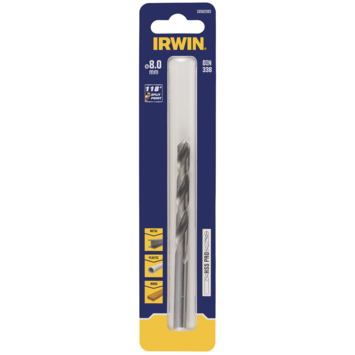 Irwin HSS PRO boor 10502393 is een metaalboor met de volgende afmetingen: Ø 8.0mm / werklengte 75mm / totale lengte 117mm. Inhoud: 1 stuks. HSS PRO metaalboren van Irwin zijn van industriële kwaliteit en bij iedere klusser geliefd om hun veelzijdigheid. Naast gietijzer, staal en andere ijzerlegeringen ook zeer geschikt voor het boren in allerlei non-ferromaterialen, kunststof, pvc en hout. De boorkop is geslepen in 118° wat zorgt voor uitstekende zelfcentrerende eigenschappen. Hierdoor zal de boor minder snel wegglijden. HSS PRO boren van Irwin hebben een hoge elasticiteit waardoor ze minder snel breken, ook bij kleine diameters. Voldoen aan kwaliteitsnorm DIN 338. Geschikt voor alle gangbare gesnoerde boormachines en accuboormachines.