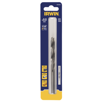 Irwin HSS PRO boor met 10502395 is een metaalboor met de volgende afmetingen: Ø 9.0mm / werklengte 81mm / totale lengte 125mm. Inhoud: 1 stuks. HSS PRO metaalboren van Irwin zijn van industriële kwaliteit en bij iedere klusser geliefd om hun veelzijdigheid. Naast gietijzer, staal en andere ijzerlegeringen ook zeer geschikt voor het boren in allerlei non-ferromaterialen, kunststof, pvc en hout. De boorkop is geslepen in 118° wat zorgt voor uitstekende zelfcentrerende eigenschappen. Hierdoor zal de boor minder snel wegglijden. HSS PRO boren van Irwin hebben een hoge elasticiteit waardoor ze minder snel breken, ook bij kleine diameters. Voldoen aan kwaliteitsnorm DIN 338. Geschikt voor alle gangbare gesnoerde boormachines en accuboormachines.