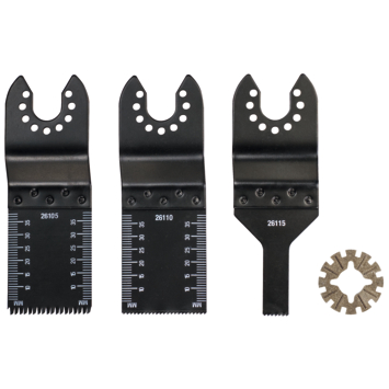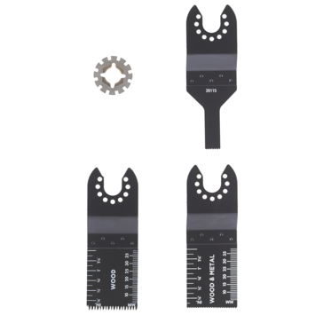 Irwin zaagbladenset IW1017104 bestaat uit 3 zaagbladen voor de populaire oscillerende Multitool MT300KA-QS van Black+Decker. Deze zaagbladen zijn ook geschikt voor: Black+Decker MT250/MT280, Stanley FME600/FME650/FMC710, Worx WX675/676. Er zit tevens een adapter bij de set zodat je deze accessoires ook op een Bosch Multitool PMF180E/190E kunt gebruiken. Een veelzijdige set dus, voor het zagen van Kunststof, Aluminium, Hout, Koper, Gipsplaat.