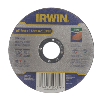 Irwin Pro Performance steenslijpschijf IW8082139 is geschikt voor het doorslijpen van steen. De slijpschijf is plat, heeft een diameter van 115mm en is slechts 1,6mm dik. Omdat hij zo dun is kunt u er snel mee werken en verliest u minder materiaal. Past op alle gangbare 115mm haakse slijpers.