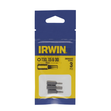 IRWIN IW6061628 is een 3-delige Torx schroefbitset bestaande uit schoefbits T10 T15 en T30 Lengte bits: 25mm Geschikt voor alle accuschroefboormachines Inhoud: 3 stuks Nauwkeurig vervaardigd volgens de laatste technieken van de hoogste standaard