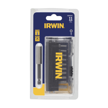 IRWIN schroefbitset IW6062529 is een 10-delige bitset bestaande uit de meest gangbare maten TORX schroefbits: 1xT10/2xT15/2xT20/2xT25/1xT30/1xT40 + schroefbithouder. In een overzichtelijke, compacte houder om altijd bij de hand te hebben. De schroefbithouder zit los in de verpakking,. Deze kun je echter ook opbergen in de set. In het scharniergedeelte zit een ruimte waarin deze past. Te openen met een schuifklepje.