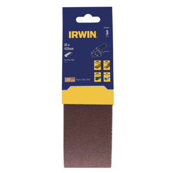 IRWIN schuurband IW8083816 is onder andere geschikt voor bandschuurmachines van AEG en METABO met bandafmeting 65x410mm. De schuurband heeft korrelgrootte 100. Dit zorgt voor een medium afwerking. Deze superkwaliteit schuurband meet 65x410mm. Inhoud: 3 stuks.