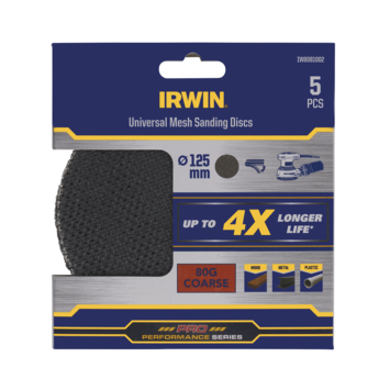 Irwin schuurgaas IW8081002 is geschikt voor alle excentrische schuurmachines met schuurzool diameter 125mm. Het schuurgaas heeft korrelgrootte 80. Dit zorgt voor een grove afwerking. Inhoud: 5 stuks. Gewoon schuurpapier verstopt snel waardoor de schuurprestatie snel afneemt en je tijdens je klus regelmatig het schuurpapier moet vervangen. Irwin schuurGAAS gaat 4x langer mee dan gewoon schuurpapier. Door de open structuur blijft de stofafzuiging optimaal en loopt het schuurgaas niet zo snel vol. Irwin schuurgaas is herbruikbaar doordat je het kunt schoonkloppen en afspoelen. Een ander voordeel van de open structuur is dat schuurgaas op elk merk/type schuurmachine past. Je hoeft dus geen rekening te houden met het gatenpatroon in de schuurzool van je schuurmachine. Dankzij de zelfhechtende laag en klittenbandbevestiging zijn de schuurstroken eenvoudig te bevestigen en is er nauwelijks speling tussen schuurvel en machine. Dat zorgt voor een hogere afname. Inhoud: 5 stuks.