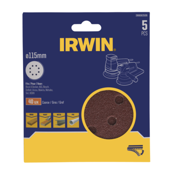 Irwin schuurschijf rond Ø115 mm zelfhechtend K40, 5 stuks