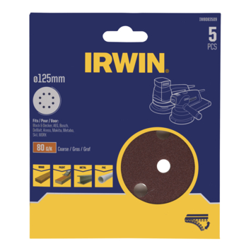 Irwin schuurschijf rond Ø125 mm zelfhechtend K80, 5 stuks