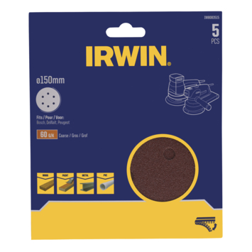 Irwin schuurschijf rond Ø150 mm zelfhechtend K60, 5 stuks
