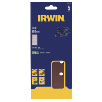 Irwin schuurvel 230 x 93 mm K150 voor klembevestiging, met perforatie voor Bosch, Skil, Gamma, Makita, Metabo, 5 stuks.