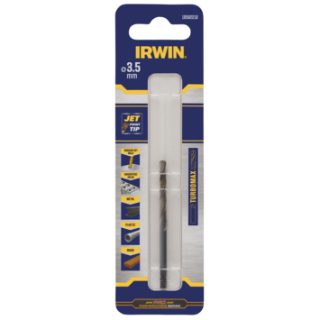 IRWIN HSS Turbomax boor 10502210 is een metaalboor met de volgende afmetingen: Ø 35mm / werklengte 39mm / totale lengte 70mm Inhoud: 1 stuk HSS TURBOMAX metaalboren van IRWIN hebben een unieke 100° punt die er voor zorgt dat zelfs op gebogen oppervlakken de boor niet wegloopt en de boor zich 10x sneller vastbijt in het metaal De boorkop zelf is geslepen in 140° wat zorgt voor minimale braamvorming en een gladde afwerking Het boorlichaam is vervaardigd van W9 snelstaal voor scherpere snijranden en optimale hittebestendigheid en is extra gehard tot 63-66 HRC Ook geschikt voor roesvrij staal en allerlei non-ferromaterialen kunststof pvc hout en hardhout Vergeet echter nooit koelmiddel te gebruiken bij boren in roestvrij staal De schacht heeft onderaan 3 vlakke zijden voor een optimale klemming in de boorkop om slippen tegen te gaan Geschikt voor alle gangbare gesnoerde boormachines en accuboormachines
