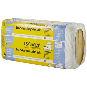 De Isover isolatieplaat glaswol 120x60 cm - dikte 4,5 cm is een glaswolplaat voor warmte- en geluidsisolatie van onder andere een buitenmuur, tussenwand, plafond of kruipruimte. De plaat is aan één zijde voorzien van een glasvlies bekleding voor een prettige verwerking. De isolatiewaarde (Rd) is 1,2. Hoe hoger de Rd-waarde, hoe groter de energiebesparing.