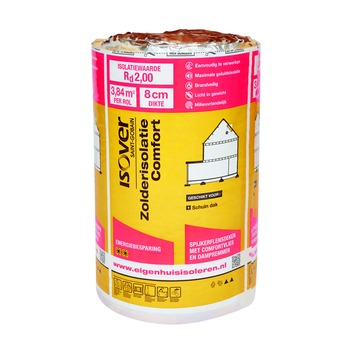 De Isover zolderisolatie Comfort glaswol 640x60 cm - dikte 8 cm is een flexibele glaswolrol aan één zijde voorzien van een dampremmende aluminium bekleding. Daarnaast heeft is de rol voorzien van een spijkerflens waardoor het vastzetten van de isolatie bij een hellend dak wordt vergemakkelijkt. Daarnaast is de rol voorzien van snijlijnen waardoor het op maat snijden van de rol wordt vergemakkelijkt. Isover Zolderisolatie Comfort is uitermate geschikt voor het isoleren van een schuin dak aan de binnenzijde.