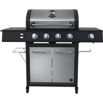 Met vier krachtige branders heb je ruimte én controle. Deze gasbarbecue is ideaal als je voor meerdere mensen tegelijk wilt grillen. Je stelt de temperatuur per zone in, zodat je vlees, vis en groenten tegelijkertijd bereidt. De deksel houdt de warmte goed vast, wat zorgt voor een gelijkmatige garing. Met de ingebouwde thermometer check je eenvoudig de temperatuur, zonder het deksel te openen. Dankzij de regelbare luchttoevoer pas je de luchtstroom aan voor een stabiel grillproces. Het royale kookoppervlak van 70,3 x 42 cm geeft je veel werkruimte. Na gebruik rol je de barbecue met wielen gemakkelijk naar binnen of een andere plek in de tuin. De totale afmetingen zijn 121 x 57 x 145 cm.