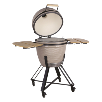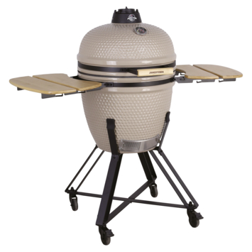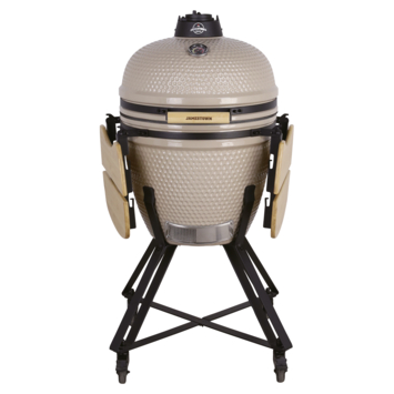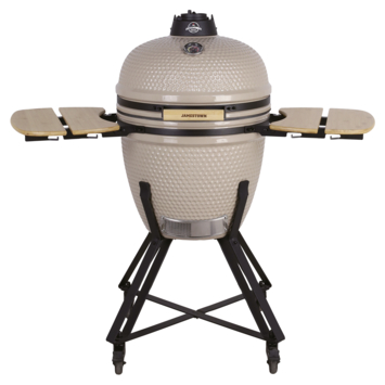 De Jamestown kamado BBQ keramiek beige 54,5 cm is een houtskoolbarbecue met een kookoppervlak van Ø 46,5 cm. Daarmee bereid je eenvoudig vlees, vis of groenten voor maximaal 14 personen. De keramische behuizing houdt warmte goed vast, wat zorgt voor een gelijkmatige bereiding.