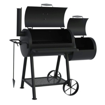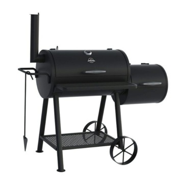 Maak je barbecuespecialiteiten onvergetelijk met de Jamestown Smoker Charlton. Deze zwarte rookbarbecue maak je aan met houtskool of houtsnippers en is ideaal voor gezellige bijeenkomsten met vrienden en familie. Met twee kookoppervlakken van 77 x 44 cm en 43,5 x 38 cm biedt hij voldoende ruimte om al je favoriete gerechten te bereiden.