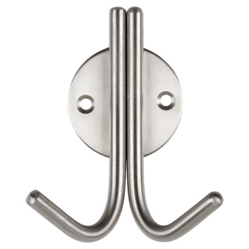 Op zoek naar een dubbele jashaak? Deze jashaak heeft 2 haken. De metalen jashaak is uitermate geschikt voor verschillende ruimtes zoals de hal, keuken en keuken. De haak heeft een RVS-kleur en wordt geleverd met bevestigingsmateriaal.De jashaak is zeer eenvoudig te monteren.