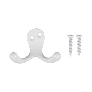Op zoek naar een dubbele jashaak? Deze jashaak heeft 2 haken. De metalen jashaak is ideaal om te gebruiken in de hal, badkamer en keuken. De witte haak wordt geleverd inclusief bevestigingsmateriaal. Prettig is dat de haak zeer eenvoudig te bevestigen is.