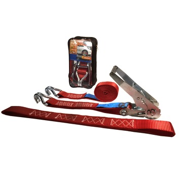 Deze spanband is voorzien van een rubberen ratel en J-haken voor het fixeren van auto's op een aanhangwagen. Zo weet je zeker dat je auto op zijn plek blijven tijdens het transport. De Jumbo auto ambulance/ autotransport set is gemakkelijk, snel en veilig in gebruik. Dit maakt de band een perfect vastsnoerinstrument. De oranje band van polyester heeft een lengte van 3 meter, wordt geleverd inclusief J-haken en een tussenstuk van 45cm voor auto's met een wielmaat kleiner dan 17 inch. Kortom: de perfecte tool voor het veilig vervoeren van je goederen.