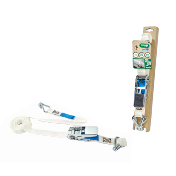 Jumbo kleurloze spanband met ratel en J-haken - wit - incl. hoekbeschermer en J-haken