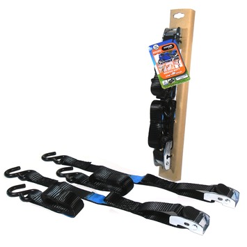 Deze spanband is voorzien van een rubberen klemgesp voor het fixeren van je motor tijdens het vervoeren. Zo weet je zeker dat je motor op zijn plek blijft staan tijdens het transport. De Jumbo motor spanband zwart met zware klemgesp 2x 1,8m 25mm is mede door de handige S-haken om de band mee vast te zetten, gemakkelijk, snel en veilig in gebruik. Dit maakt deze polyester band een perfect vastsnoerinstrument voor onder andere transport. Dit artikel wordt verkocht per twee stuks met ieder een afmeting van 1,8m inclusief een hoekbeschermer, zodat ook alle hoeken tijdens het versjouwen goed beschermd zijn. Kortom: de perfecte tool voor het veilig vervoeren van je motor.