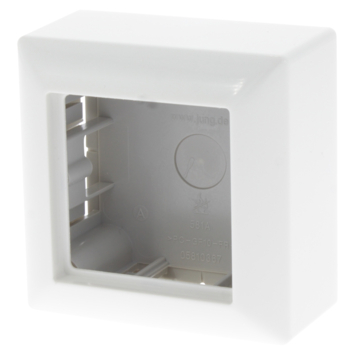 Met het opbouwraam kun je stijlvol inbouwschakelmateriaal ook voor opbouw gebruiken. Het opbouwraam is gemaakt van hoogwaardig glanzend duroplast wat zeer krasbestendig is. Dit opbouwraam beschikt over een vast afdekraam en past binnen de Jung AS500 serie met de kleur wit.