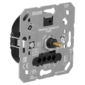 Deze LED dimmer van Jung dimt traploos vrijwel alle 12/230V en dimbare LED lichtbronnen. De basis lichtsterkte is in te stellen door middel van de potentiometer. De dimmer kan LED lampen tussen de 3 en 60 watt dimmen.