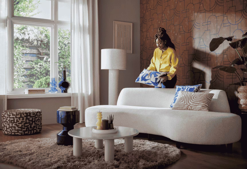 Met woonaccesoires zoals sierkussens geef je jouw interieur meteen een nieuwe look. Mix verschillende maten, kleuren en structuren voor een speels effect. Kies bijvoorbeeld een vrolijk streepje met gekartelde rand óf ga juist voor ton-sur-ton voor een rustige uitstraling. Zo creëer je eenvoudig meer sfeer én comfort in je woonkamer.