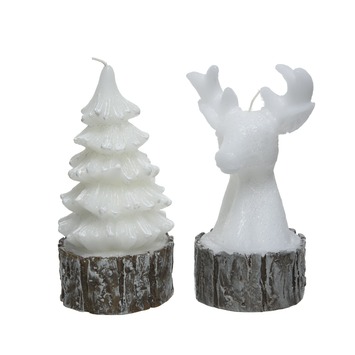 Het kerstseizoen is een seizoen vol met prachtige verlichting en decoratie. Jij ontwerpt de gewenste sfeer in huis met jouw eigen orginaliteit. Door kaarsen te gebruiken, creëer jij een aangenaam warme omgeving in het interieur. Deze kaarsen zijn te verkrijgen in de vorm van een dennenboom of hert. De kaars is 17 centimeter lang en is te verkrijgen in een witte kleur en. Ook zijn deze kaarsen te gebruiken als decoratie.