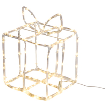 Wat is er nog feestelijker dan een verlicht cadeautje. Verlicht binnen of buiten met deze mooie kerstdecoratie. Dit cadeautje heeft 110 warm wit LED lampjes. Met 5 meter snoer.